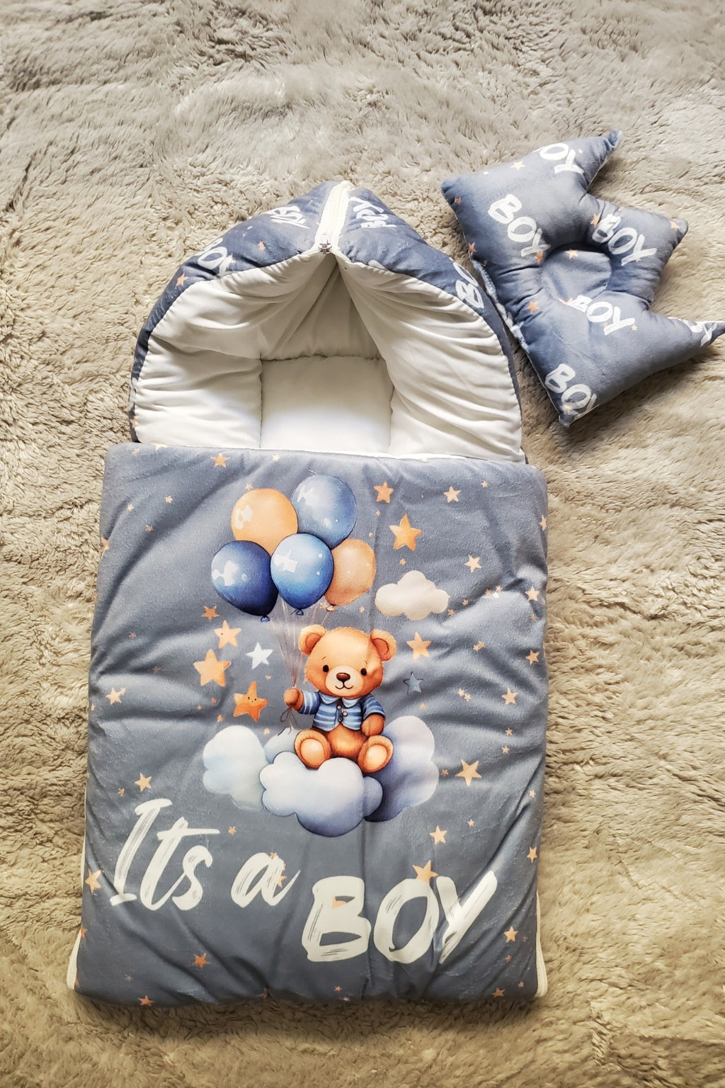 ITS A BOY GRAY Velvet CARRY NEST Set 0-6M