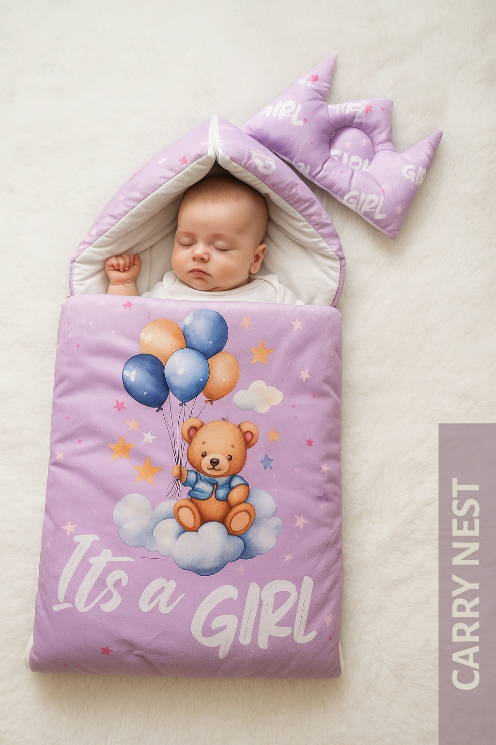 ITS A GIRL PURPLE Velvet CARRY NEST Set 0-6M